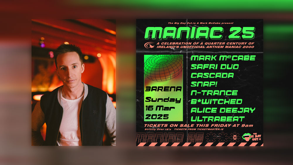 In Ireland, we appreciate a good dance banger. From stadiums in Sydney to weddings in Chicago, from Freshers weeks to Electric Picnic, there is one song above them all that means the party has started. It’s 100% Irish, has never faded from our psyche and now it’s time to celebrate the joy that is ‘Maniac 2000’ as the nation’s unofficial anthem turns 25 with a very special event in 3Arena, in March next year! The Big Day Out and Mark McCabe presents Maniac 25! Tickets are priced from €46.20 to €78.25; additional charges may apply, and go on sale Friday, 29 th November at 9 am.