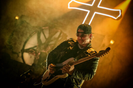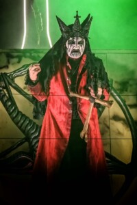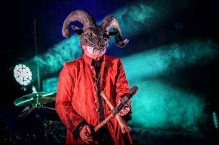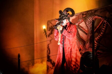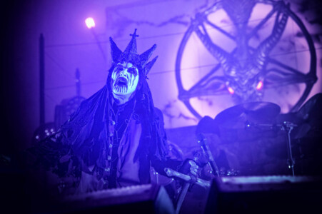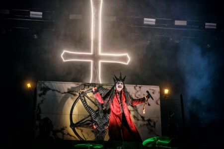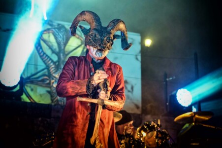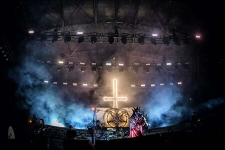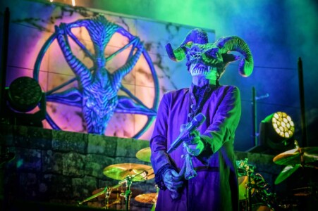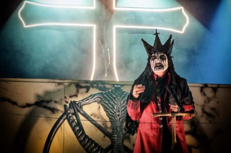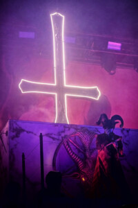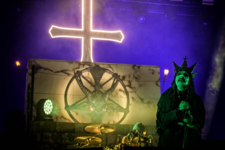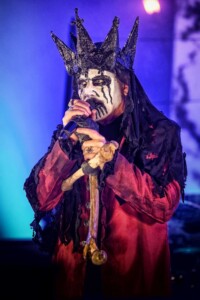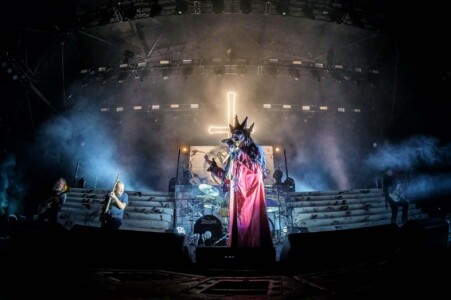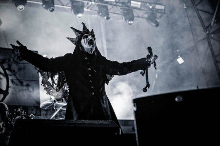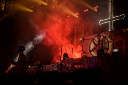With night truly setting in now, everyone is ready to catch Mercyful Fate perform tonight. With the stage hidden behind a curtain emblazoned with the band’s logo, the suspense is rising across the arena. Once the curtain drops, an elaborate set can be seen on the stage which is only lit with a huge LED inverted cross. As the lights lift, King Diamond is stood at the top of the set wearing a ram skull mask in front of a large satanic pentagram. The rest of the band enter and the show is ready to begin as they start playing ‘The Oath’. Diamond makes full use of the stage as he comes all the down to the front before heading back up to the top. His vocal range is incredible as he moves from the highest notes and into lower tones with what seems like such ease. When not singing, he can be seen air guitaring his bone mic stand along with Hank Shermans immense guitar riffs and solos. By the third song, Diamonds mask comes off and is replaced with a crown over a damaged black veil as he announces they will be playing an epic 9-minute new song, ‘The Jackal of Salzburg’ in true Mercyful Fate fashion. He’s very charismatic as a frontman and jokes with crowd and band throughout the set creating some great crowd interaction and setting up the next song with fantastic timing. The rest of the band are on fire tonight too as they tear through the songs with amazing skill. The standout of course is Sherman with his super shredding solos. Mike Wead has his own incredible solos too though during ‘A Dangerous Meeting’ and ‘Doomed by the Living Dead’ showcasing the pure talent the whole band has. Heading into the absolute classic ‘Melissa’ Diamond makes a quick costume change and keeps the show moving. The whole set to be honest has been absolutely outstanding and so far, they have been one of my favourite bands of the weekend so far.