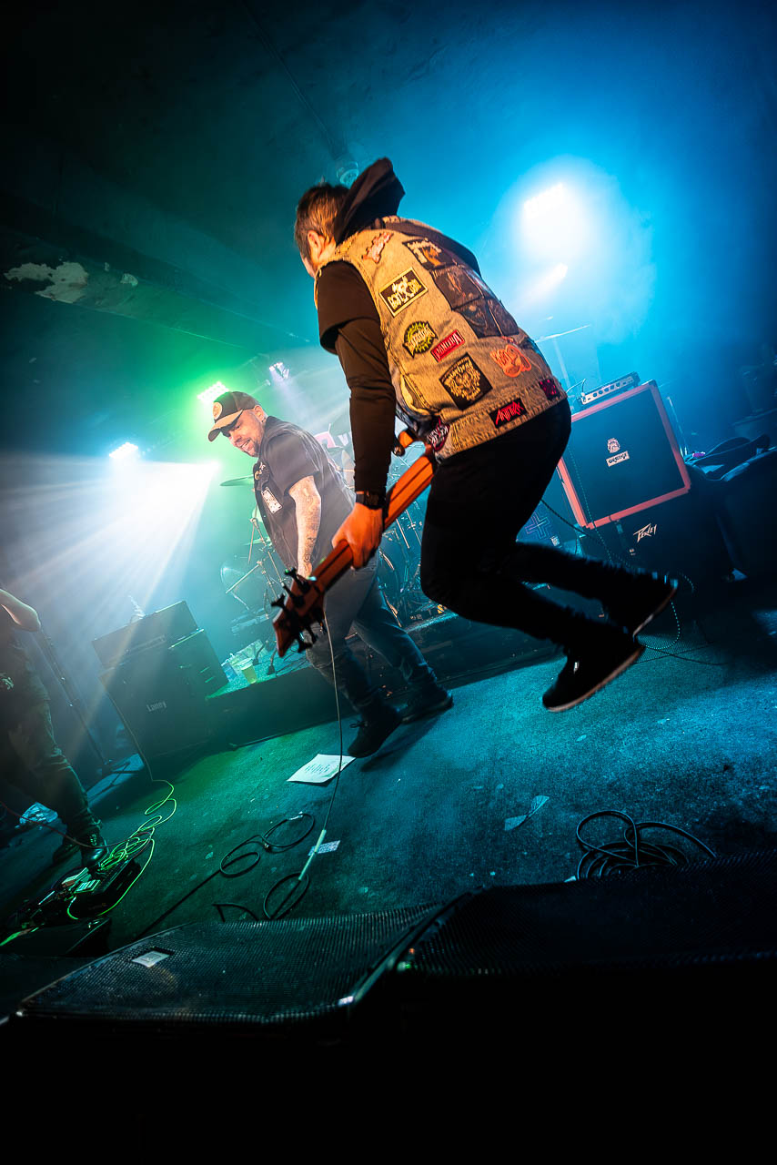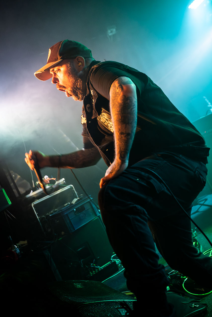 Last but certainly not least, Indominus, one of the most brutal bands on the local scene. These guys always bring it live, a little too much at times, it seems as bassist Mark takes down part of the drum kit on son two. But that doesn’t detract from the absolutely savage performance they put on as a close to tonight’s proceedings. Every band on the bill offered something different this evening, but none is quite like Indominus. You’d usually find them playing in the competition among the heavyweights of the local scene, where genres are usually similar enough that the crowd in the room will understand what they’re in for. I feel that tonight, anyone who’s still around for the 11 pm kickoff is either mad as fuck and knows what they’re in for, or they’re still hanging on and now having their faces melted before bedtime. A seriously savage performance from start to finish.