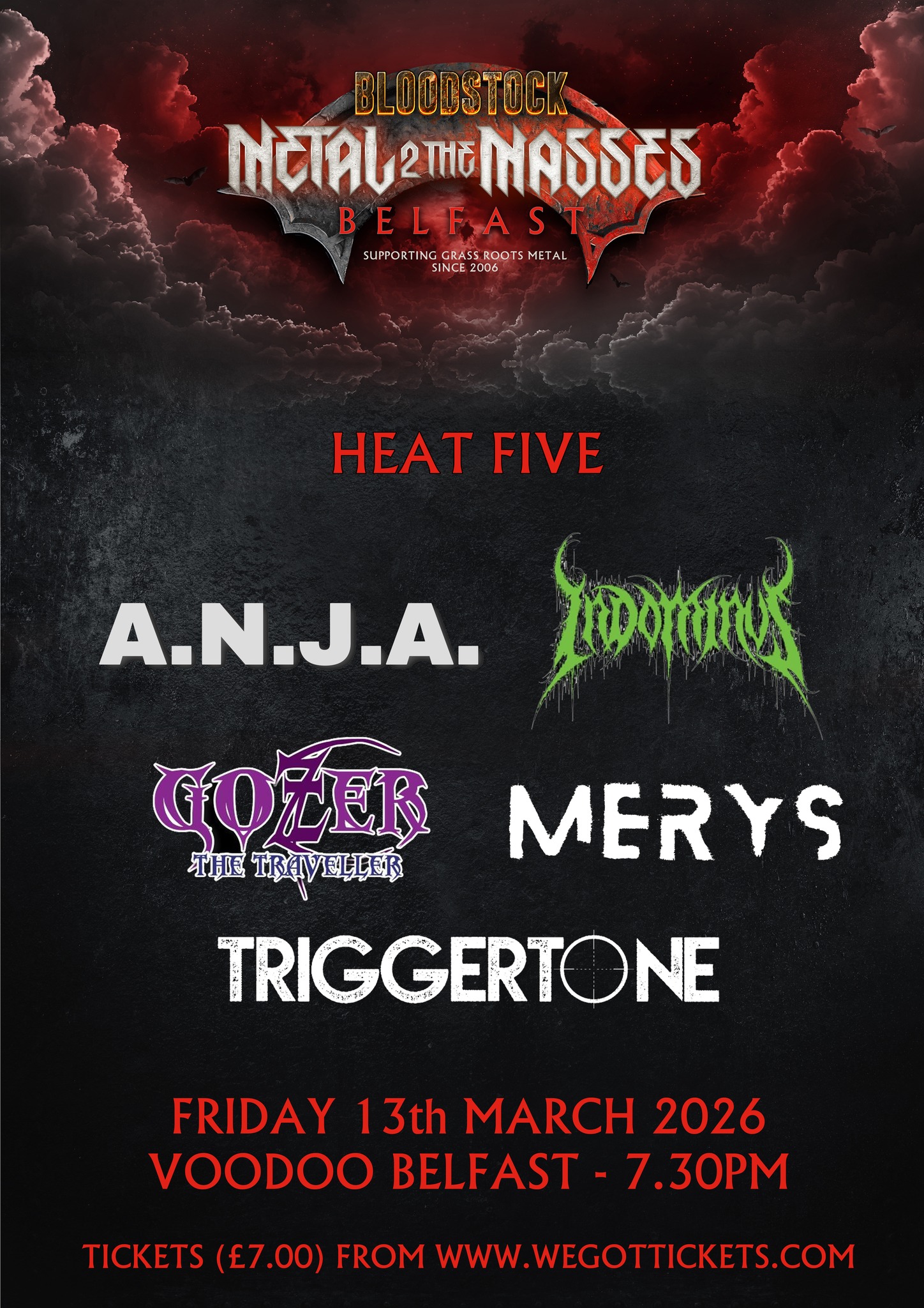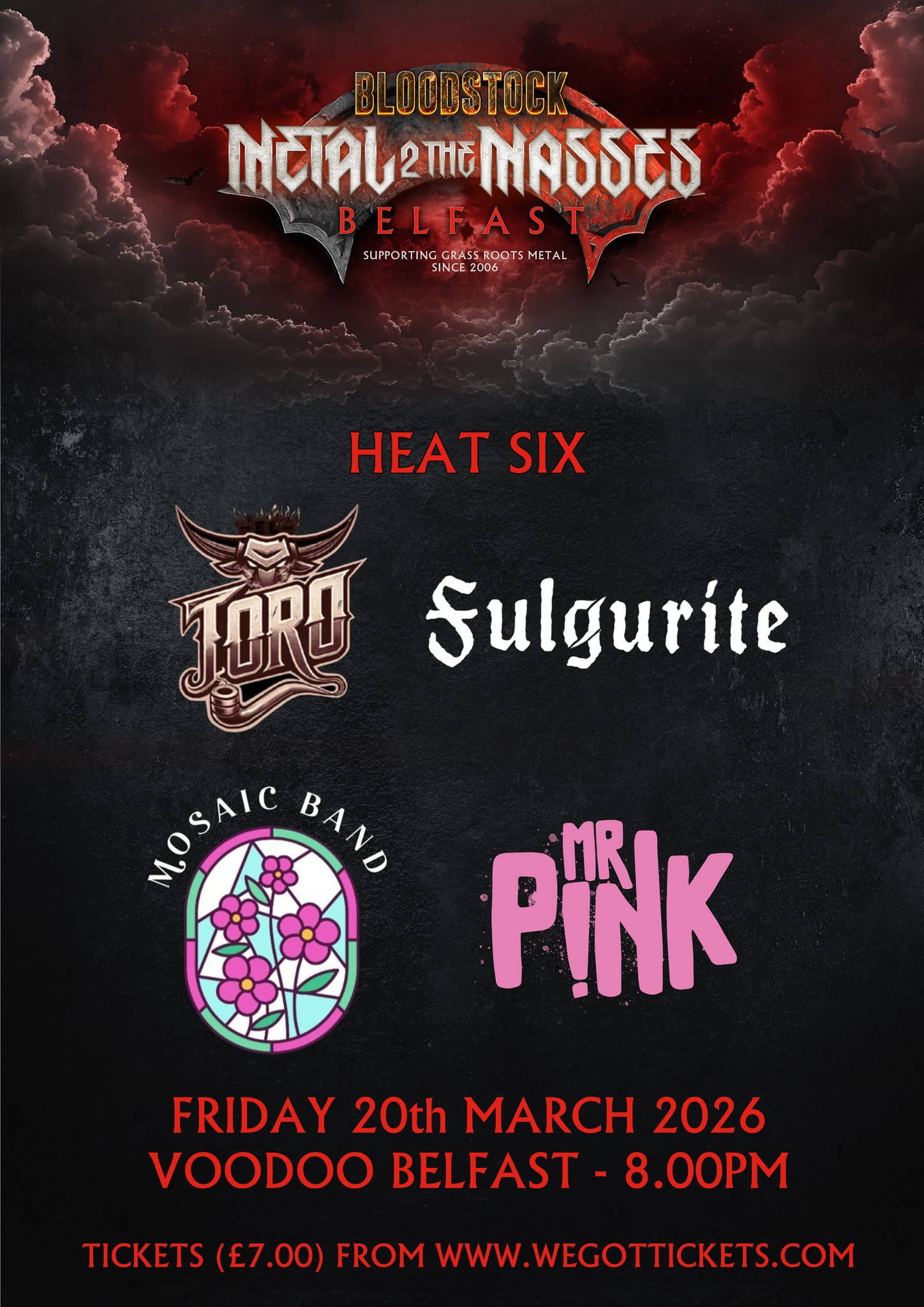 The Distortion Project proudly presents Heat SIX of the 2026 Metal 2 the Masses competition Northern Ireland. Bands will be competing to secure a coveted slot on the New Blood Stage at Bloodstock 2026 this year alongside such heavyweights as Judas Priest, Lamb of God, Sepultura, Testament, Body Count, Cryptopsy, Castle Rat and more. In addition, the winning band will have their travel expenses covered up to the value of £400.