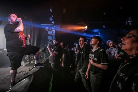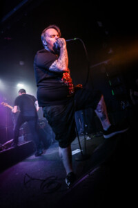 R.P.C all the way from Cork are back I’m sure to their dismay! And this time their guitarist has been rebuilt like the 6 Euro man and for sure, their sound is a lot heftier with him back in the band. R.P.C’s angsty vibe is tenfold with the second guitar creating a brutal weight to their soundtrack and the Voodoo crowd are digging it. The mosh pit is back in full force and following the lead of their front man in his boxers I can see more naked flesh in the building than I need to see. I have to say R.P.C are a force to be reckoned with as a complete band, a savage performance from the crazy kids from Cork tonight has added an additional layer of confusion to the mix and with Gravepath still to play it’s a tough one to call. I do feel for the guy who had yer man’s sweaty ball sack on the back of his neck whilst carrying him around the floor! #fuckinriddled
