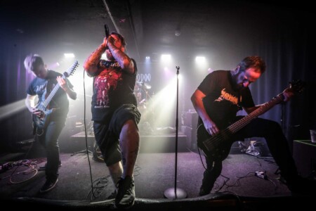 Gravepath finishes off tonight’s line up and weirdly I can’t recall their last performance,  how I do not, I do not know, after witnessing their opening few tracks they have unleashed a barrage of sonic abuse that should be criminal. Much like Indominus and Acid Age, there is a wealth of experience in the band that shines through, a truly brutal sound that batters the Voodoo crowd on a Bloody Sunday no less, these poor sheeple have work in the morning and are going to go in wrecked! There is no let-up in a set that is relentlessly pummelling those who headbang before them, and you can see across the room just how well their set is going down.