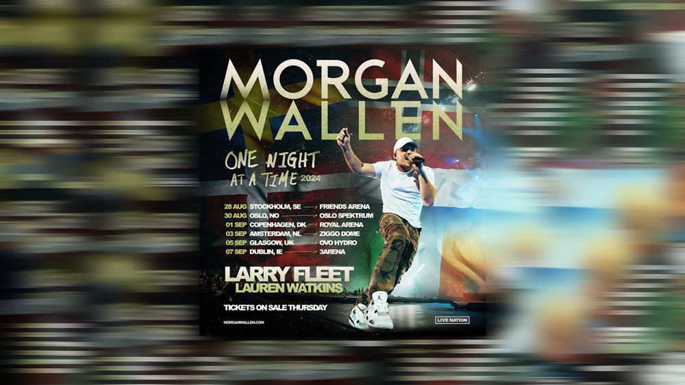 As the tour continues its trek throughout the United States this summer, the 11-time Billboard Music Awards-winner announces plans to expand into his first-ever European run with an additional six shows this fall: Stockholm, Sweden; Oslo, Norway; Copenhagen, Denmark; Amsterdam, Netherlands; Glasgow, UK and Dublin, Ireland, Aug. 28 – Sept. 7, 2024 with Larry Fleet and Lauren Watkins on all dates as direct support.