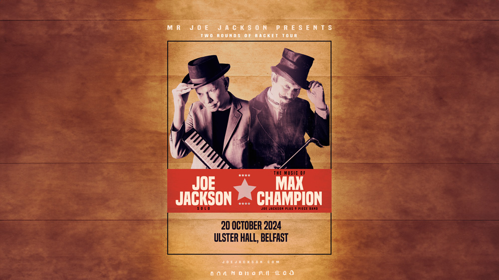 “The Two Rounds Of Racket Tour” promises to be festive, fun, and unlike anything else music fans will see next (or any other) year. The show will be in two parts: a solo set by Joe Jackson of his original songs, and a set based on the album What A Racket! – the first performance in more than 100 years of the songs of forgotten Music Hall genius Max Champion, with Joe and a nine-piece band.