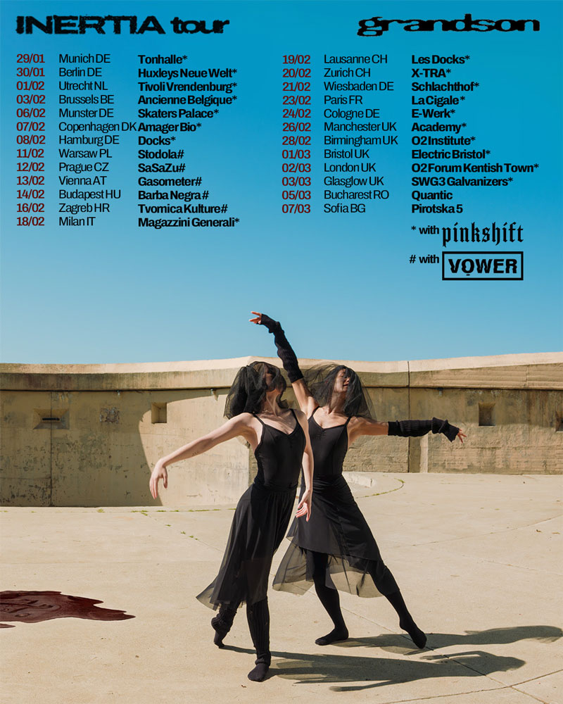 Photo Credit: Philip Shum grandson’s ‘INERTIA’ era is seeing him using the raw power of riff-heavy rap to focus attention on issues such as a new wave of facism, a rise in misogyny, an assault on queer rights and the Palestinian solidarity movement. His recent tracks‘BRAINROT’, ‘SELF IMMOLATION’ and ‘GOD IS AN ANIMAL’ have been rampant rallying cries for justice, which take on an incendiary intensity in the live arena. This was underlined when he headlined Glastonbury’s activism and debate hub the Left Field Stage for a set which Louder Than War described as a “revelation… have taken Rage Against The Machine’s heavy duty funk crank into a new space that confronts the chaos of the now.” Now grandson announces that he will follow the September 5th release of his new album ‘INERTIA’ by embarking upon an extensive UK and European headline tour in 2026. The record’s maximalist sound is inspired by his realisation that fans seek catharsis at his shows, finding optimism in a like-minded community and to channel their pain and hopelessness into something meaningful. grandson, real name Jordan Benjamin, says, “The moment I’ve been waiting 2 years for since the last headline tour ended is finally here- we are bringing the resistance back to Europe. This is one gig where you can be yourself and lose yourself- not just in the music, but in the collective spirit of a thousand other souls who stand for what you stand for all rising up at once and saying. “We’re not gonna take this shit anymore”. When the lights go down and the first note hits it’s going to be mayhem. Can’t wait…” Tickets for the tour will go on general sale HERE from 10am BST / 11am CET on Friday, September 5th. Pinkshift will support at all dates from Munich to Hamburg, before rejoining the tour at Milan through to the final date in Glasgow. VOWER will support from Warsaw through to Zagreb. In addition to the UK and European dates, listed below, grandson recently announced details of an autumn North American headline tour, please see HERE for dates and ticket information.  JANUARY 2026 29th – Germany, Munich, Tonhalle 30th – Germany, Berlin, Huxleys Neue Welt FEBRUARY 2026 1st – Netherlands, Utrecht, Tivoli Vrendenburg 3rd – Belgium, Brussels, Ancienne Belgique 6th – Germany, Munster, Skaters Palace 7th – Denmark, Copenhagen, Amager Bio 8th – Germany, Hamburg, Docks 11th – Poland, Warsaw, Stodola 12th – Czech Republic, Prague SaSaZu 13th – Austria, Vienna, Gasometer 14th – Hungary, Budapest, Barba Negra 16th – Croatia, Zagreb, Tvornica Kulture 18th – Italy, Milan, Magazzini Generali 19th – Switzerland, Lausanne, Les Docks 20th – Switzerland, Zurich, X-TRA 21st – Germany, Wiesbaden, Schlachthof 23rd – France, Paris, La Cigale 24th – Germany, Cologne, E-Werk 26th – UK, Manchester, Academy 28th – UK, Birmingham, O2 Institute MARCH 2026 1st – UK, Bristol, Electric Bristol 2nd – UK, London, O2 Forum Kentish Town 3rd – UK, Glasgow, SWG3 Galvanisers 5th – Romania, Bucharest, Quantic 7th – Bulgaria, Sofia, Pirotska 5 |