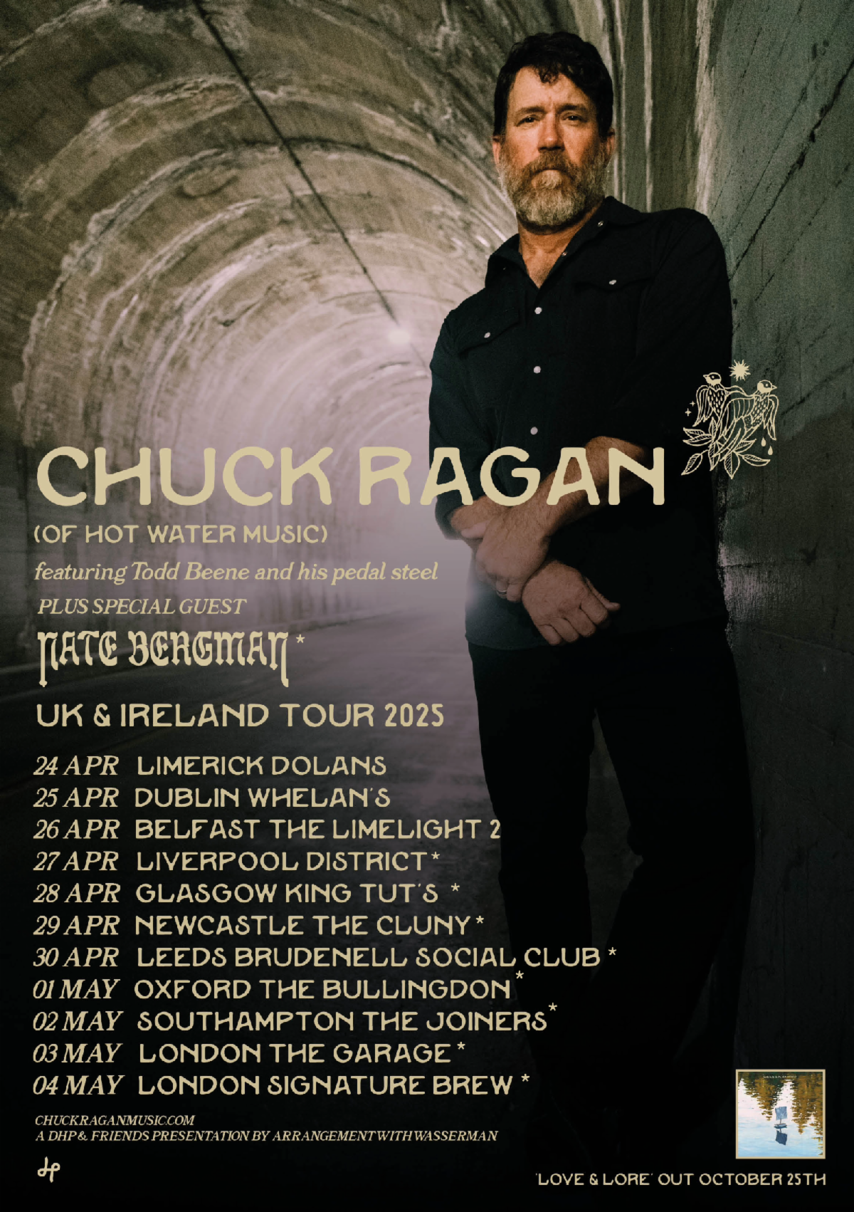 NATE BERGMAN, the Nashville by way of D.C. singer-songwriter, is a performer with a voice that transcends generations. His powerful vocals create a timeless sound that weaves through the rich tapestry of Nashville’s musical heritage. Bergman’s unique ability to infuse elements of country, rock, folk, and soul results in a sound that resonates with an increasingly diverse audience. Now he’s announced that he’ll be direct support to Chuck Ragan on his eight-date tour throughout the UK this April! The Spring shows will see him starting in Liverpool and coming through Glasgow, Newcastle, Leeds, Oxford, Southampton, before culminating in two dates in London. Full UK Tour Dates: Mon 27th Apr – LIVERPOOL District Tues 28th Apr – GLASGOW King Tut’s Wed 29th Apr – NEWCASTLE The Cluny Thu 30th Apr – LEEDS Brudenell Social Club Main Room Fri 1st May – OXFORD The Bullingdon Sat 2nd May – SOUTHAMPTON The Joiners Sun 3rd May – LONDON The Garage Mon 4th May – LONDON Signature Brew Blackhorse Road Tickets are on-sale now and available here. |