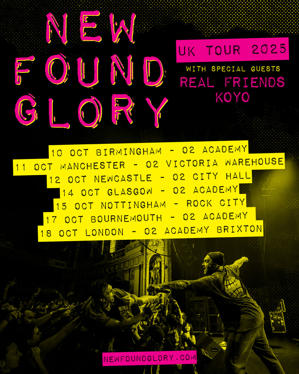 APRIL 8, 2025 – Coral Springs, FL – New Found Glory announce their return to the UK for their first full headline tour in 8 years! The tour will be kicking off in Birmingham on 10th October and traveling to cities throughout the UK with support from special guests Real Friends and Koyo. Tickets go on sale Friday, April 11th at 10am. Tickets can be purchased via this Link.