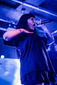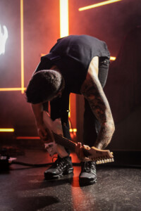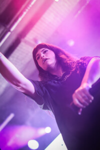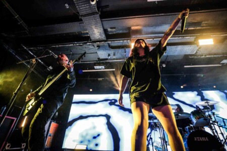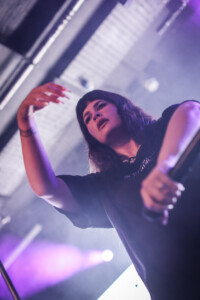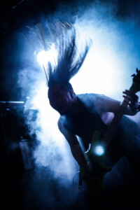 A swift turnaround leads us right up to the moment we’ve been waiting for, Spiritbox and their Belfast debut. As the lights drop the crowd goes wild and Spiritbox wastes no time getting into slamming the riffs. Their sound is huge, it’s hard to believe it’s one guitar, bass and drums, it sounds like an army coming over the top! The guys sound is tight, starting and stopping on a dime, Courtney planted front and Center but taking advantage of every inch of the stage as the pent-up energy overflows. The same goes for the crowd, as the first three songs fly I and we’re back in the room watching I can see the wave of enthusiasm across the room like a tsunami waiting to go off, when Courtney asks for vocals, she gets it and then some! I haven’t seen a crowd as animated in a long time as Belfast is tonight, clearly, they have bought into Spiritbox hook, line and sinker and why not? Their set is a rollercoaster of highs and lows taking their fans with them, from sultry intros with subtle vocal nuances to brutal guttural growls that would scare the bejesus outta ya! Courtney’s vocal range is a joy to watch live, the band are mighty impressive as a live entity, they bring the noise and then some, tossing in a mix of stuff from the earlier work and their full-length LP through to their more recent work like ‘Rotoscope’ with it’s ever-fluid style, Spiritbox know how to get the internets tongues wagging, but it goes down like a fine wine and Belfast is partying and shaking it’s ass long into the night tonight.