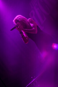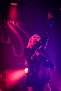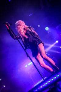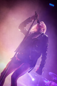 As the lights drop the band land on stage with a space for Momson right in the middle vacated for now, the bass bins below me in the pit start to boom as if it’s a ticking clock on a countdown as just as I think that the sultry figure of Momsen takes to the stage as Belfast screams their approval. BOOOM and we’re off, a hefty sound kicks in and the band come to life. Momsen commands the stage as every great frontwoman before her does, strutting her stuff from left to right belting out the lyrics from songs over their 10 + year career and of course their latest offering “Death By Rock And Roll” , “Who You Selling For” and “Light Me Up” they have really honed in on a sound now and made their mark in modern female fronted rock, with so many strong female leads out there now and Momsen fits right in. The crowd is hanging on every word coming from her lips, tossing vocal exchanges back and forth and they love every minute of it. I don’t think I’ve seen a crowd quite like this in a while, so passionate, so in-sync with an artist and literally living a breathing every moment of the performance.