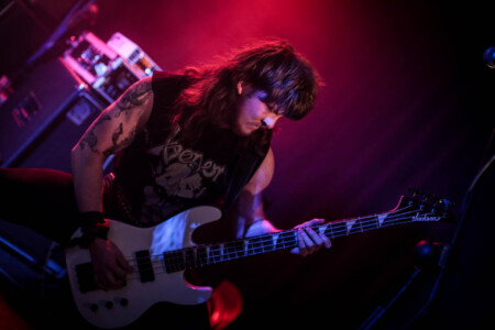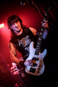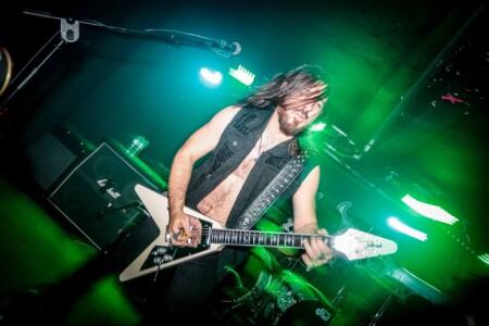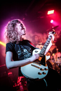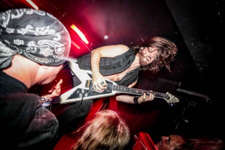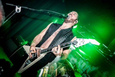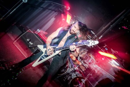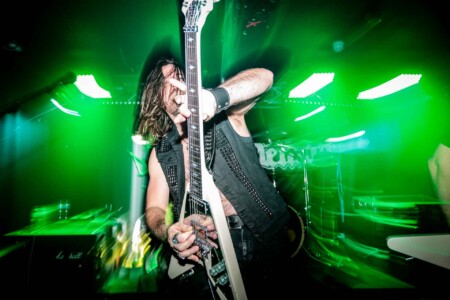So cometh the hour, cometh the band and tonight Matthew, that band is Night Demon. So looking around the room we have quite the contrast, old-school metal heads fill the room and then you have a plethora of young blood’s who have come out in support of the two younger thrash bands, but Night Demon are a band of pure class. Old school at its finest and as they hit the stage after a long dramatic intro blasting out over the PA they get stuck right in, ripping off the faces of all who stand before them. This is my first Night Demon in the flesh live experience, and it is fuckin class! These guys absolutely fuckin rock, a powerhouse trio that knows how to deliver, stage presence that a band from the US can only deliver, god bless fuckin America and their obsession with this business we can show,cos without it god knows where we would be, fuckin Jedward!