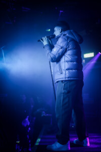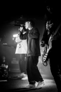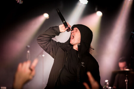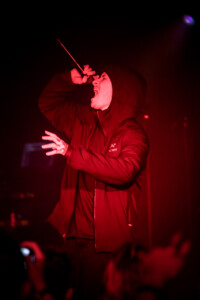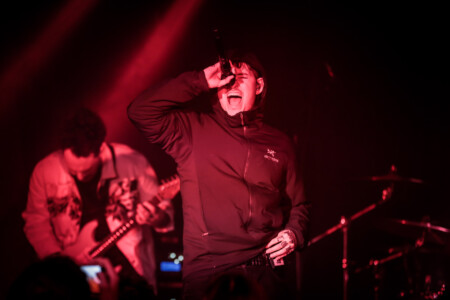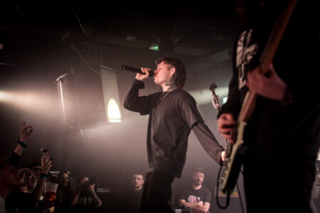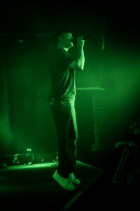 9pm comes around quickly and as Limp Bizkit plays on the PA the lights drop and I can see three figures on stage – the lights flicker and the guys start kicking in on their opening tune and from side stage nothing,nowhere arrives wearing a ski jacket up over his head and ready to a screaming Belfast crowd. In a blink of an eye, the band rages their way through the first three songs – the pit here at LL2 is nonexistent so I make do from side stage and from the crowd without pissing off too many punters! To be honest, they’re just here to party and they’re bouncing to the music and nothing is going to ruin this night, the energy is through the roof and the band are feeding off it with a hefty set of songs to keep the Belfast crowd on their toes. The dark emo-pop-punk vibe that rages from the stage has another level of angst than the normal cookie-cutter stuff you get every day, the hefty breakdowns that ensue remind us that this is an artist who sets his own standards. The crowd is digging it and the limelight is having an absolute rager, a gig that for many will have gone under the radar but I am delighted to see those in the know have came out to represent, it gives me faith the in this little corner of the world, on this tiny island that there are some cool kids after all!