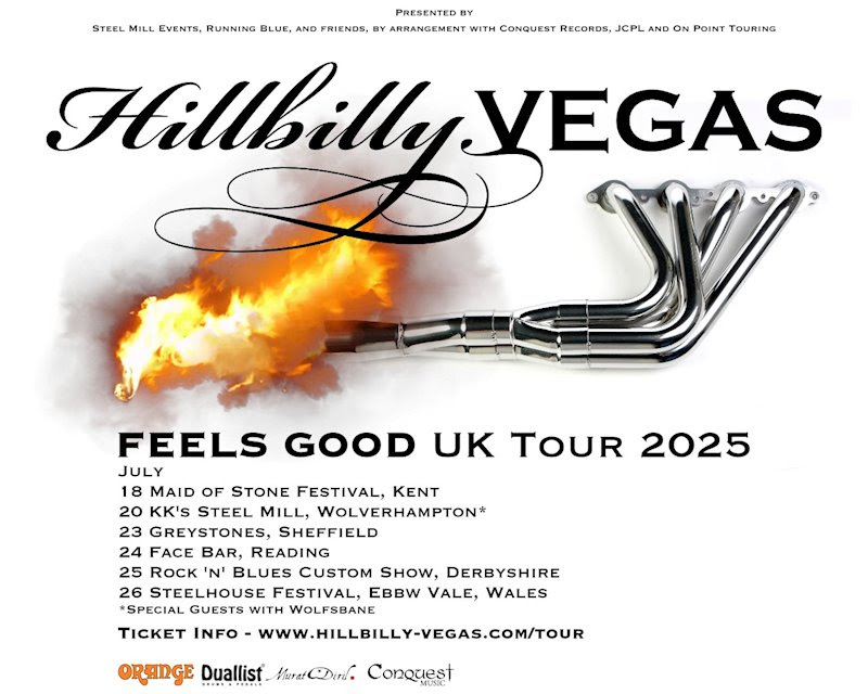 Returning to their second home, Hillbilly Vegas have been asked to play main stage festival slots at Maid of Stone, Steelhouse and the Rock ‘N’ Blues Custom Show. While they’ll be over here, the band has also slotted in club dates in Sheffield and Reading, along with a guest slot in Wolverhampton as guests to the mighty Wolfsbane.
