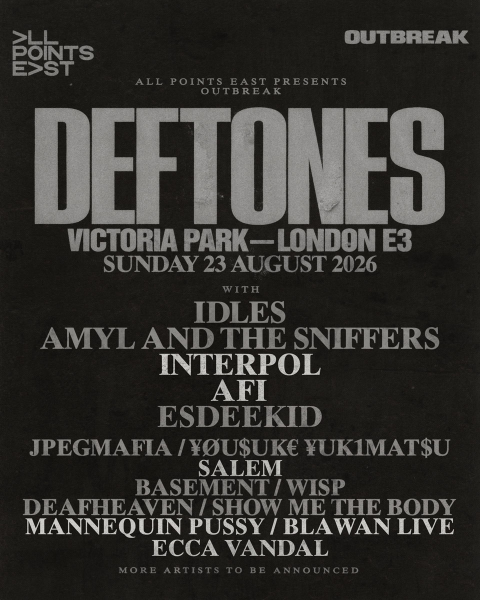 Taking place on Sunday 23rd August, London’s iconic Victoria Park will play host to newly announced names such as post-punk revivalist heroes Interpol, chameleonic rock icons AFI who visit London for the first time since the release of 2025’s Silver Bleeds The Black Sun…, and highly influential electronic pioneers Salem for their first UK performance in over 15 years. Outbreak Fest and All Points East will also welcome Philly indie-punk hybrids and festival favourites Mannequin Pussy with music from one of 2024’s most acclaimed albums in I Got Heaven in tow, brain-breaking club frequencies from UK dance figurehead Blawan’s live show, and South Africa-born, Australia-based artist Ecca Vandal, who will compound the waves of excitement around her shapeshifting alternative sonic experiments.