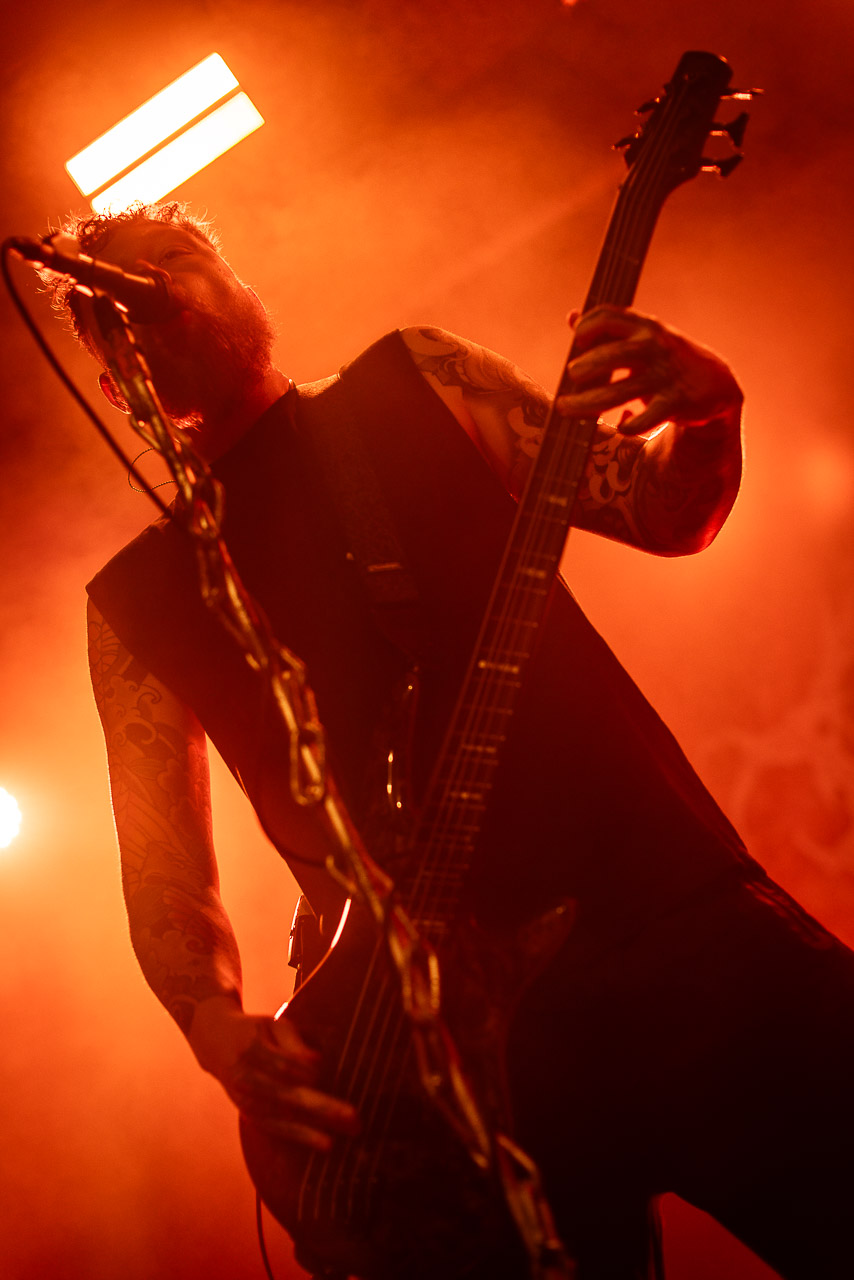 Now, for the reason we’re all here, Paleface Swiss. I recently reviewed their latest Wilted EP, and it blew me away! A savage recording that packs one hell of a punch inside its short but sweet five tracks. Paleface Swiss were new to me over the past year, having played Bloodstock in the summer, they are back on local soil to build on that momentum and take their presence on the UK and Irish scene to another level. Right from the off, you knew these guys were a totally different level, both in physical presence and power. They took The Limelight by the balls with a barrage of crushing riffs reminiscent of their Wilted EP and their broader catalogue; they unleashed a savage performance on all who braved the cold weather to be pummelled by these European maestros. Vocalist Marc ‘Zeli’ Zellweger is a force of nature, from visceral screams to rhythmic delivery, cutting through the hefty mix of distortion and delivering on every song. The bodies start flying over the top of the barriers with security clambering to keep up with the numbers. This is rare in Belfast, especially here, as the crowd is usually a little more controlled.