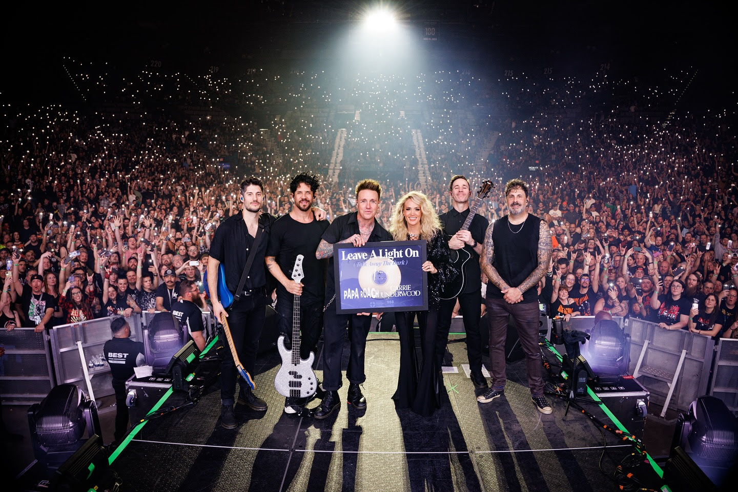 Photo Credit – Jeff Johnson. Papa Roach & Carrie Underwood have officially gone GOLD with their collaboration “Leave A Light On (Talk Away The Dark),” as certified by the RIAA. The announcement fittingly came on World Suicide Prevention Day. The band recently reunited with 8-time Grammy Award winner Carrie Underwood for a powerful new live performance of the track, filmed at their show at the MGM Grand Garden Arena in Las Vegas. Watch the video HERE. The track has notched up over 218 Million streams so far. This performance highlights Papa Roach’s ongoing mission to shine a light on suicide prevention and mental health awareness. In partnership with the American Foundation for Suicide Prevention all royalties from the song generated by both artists will be donated to AFSP in perpetuity (www.AFSP.org). The performance represents a pivotal step in the band’s commitment to using music as a force for healing and change. Earlier this year during their sold-out headline show at Wembley Arena the band presented the Campaign Against Living Miserably with a £20,000 cheque raised during their UK tour. Most recently, the band released the official music video for their fiery new single “BRAINDEAD” featuring Toby Morse of H2O. Watch the video HERE. With a new album on the horizon, Papa Roach are riding high as they celebrate 25 years together. Currently, the band is electrifying crowds on their massive RISE OF THE ROACH World Tour, bringing their energy to arenas across the U.S. See all dates HERE. Visit / Follow / Subscribe: Instagram | Facebook | Twitter | YouTube | TikTok| Spotify Band photo credit: Bryson Roatch. |