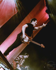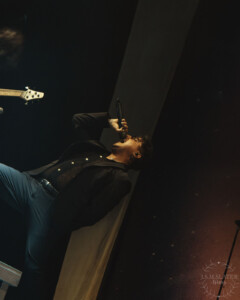 Though the singer is limited to how much he can move around, the guitarists took a lot of the responsibility to hype up the crowd for themselves. Both would be making use of the platform and jumping around and making poses, sometimes even pointing to members of the crowd below. It’s great to see bands put so much effort into breaking that barrier, when on such a big stage. When the singer had time to spare away from the mic, he would be jumping on and off the platform and even addressing the seated sides of the arena with a point and open arms.