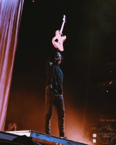 Pierce the Veil comes on to the immense scream from the barrier below. With a purely backlit first song, the band gets into their 1.5-hour set spanning an immense 15 songs. Pierce the Veil is a band that was a part of many now-adult’s teenage years. It’s amazing to see them playing an arena now, something the vocalist commented on saying that “today was a special day for [them], playing a venue this big in the UK.” The nerves must’ve been real for the band, with the singer also commenting on how his heart was beating fast after the first 3 songs.