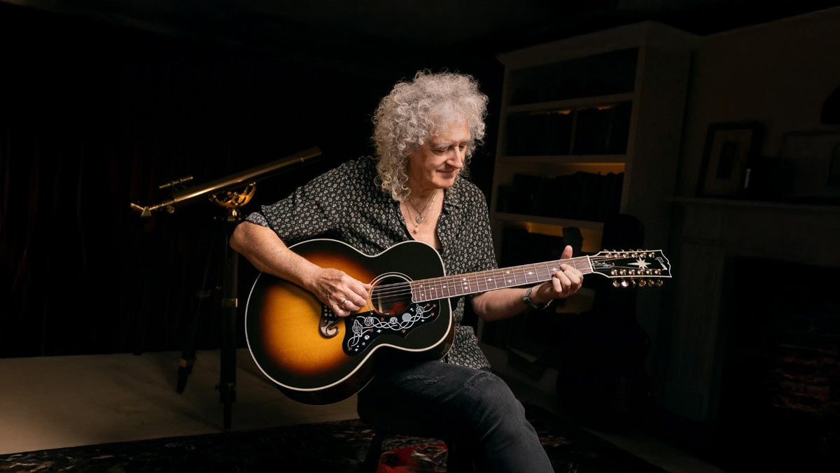 Above: Sir Brian May performs on his new Gibson Custom Brian May SJ-200 12-String acoustic guitar at the Gibson Garage London.