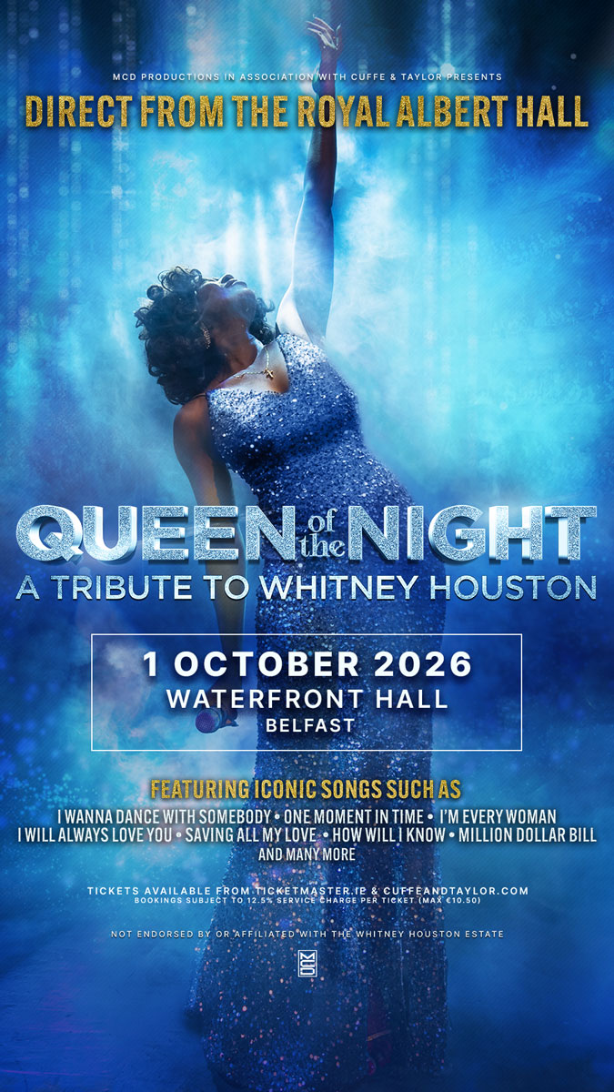 After selling 100,000 tickets, including a UK arena tour and sold-out shows at the Royal Albert Hall, The London Palladium and other UK venues, Queen Of The Night – A Tribute to Whitney Houston returns to Belfast’s Waterfront Hall on Thursday October 1st, 2026.