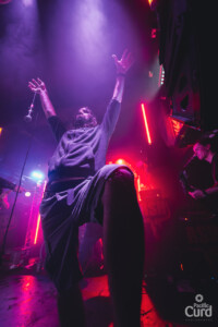First up on this rather foggy evening at the Thekla Bristol are a colourful, energetic five-piece on support who goes by the name of Kite Thief. The female singer and frontwoman Elin Allan who is both engaging and dramatic leads the band into their first song ‘Take my Body’, moving sensually around the stage rocking some bright retro canary-yellow eyeshadow. She has a soft yet strong vocal tone, which you’d think might be contrasting with the heavier guitars, but it works. Some electronica is infused into the mix during songs like ‘The Tide’, making the music sound almost Prodigy-like. The two guitarists, who look a bit like twins in almost matching black and brown tie-dye shirts, kick the air energetically on their Fenders. The bassist, showing off some insanely long dreadlocks and a chunky five-string bass appears to have had one of his strings go awry but he rocks it anyway, using the full length of the fretboard unphased. On a couple of occasions, the music slows down into more of a melodic ambience for example in ‘Pictures’. They end the set with ‘Hindsight’, an emotive, acoustic number to warm down. If you’re looking for some creative female vocals, lighter metal elements and a sprinkle of rich emotive acoustics this band is for you.