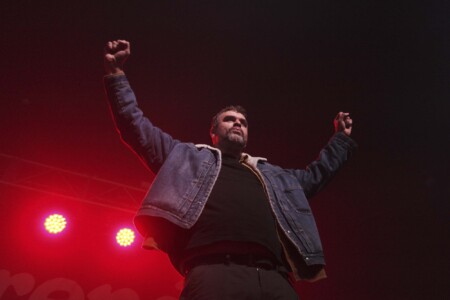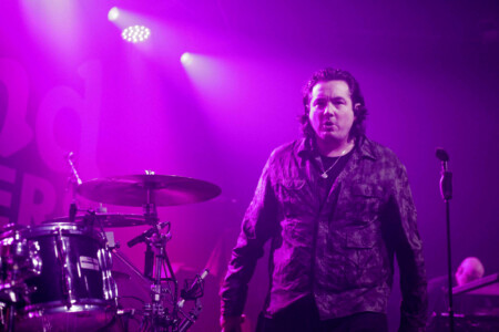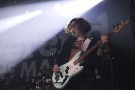 I’m slightly delayed from getting into the venue tonight because five chancers are ahead of me that hog the kiosk whilst flinging out names in the hope that they’re on the list. They’re not, and eventually fork out for tickets, but not before Danny Goffey of Supergrass fame is almost ten minutes into his set. I’m a long-time fan of Supergrass, and it’s always intriguing to see drummers step out from behind the kit and take centre stage, so I’m looking forward to seeing what Danny can offer. On a scale of Grohl to Ringo, Goffey trends positively. There’s experimentation in his sound, part funk, part disco, part post-punk commentary, yet it all somehow seamlessly ties together. Race of Life has elements of all of the above, uplifting backing vocals set against a steady danceable rhythm, peppered over with Goffey’s ramblings about life from the perspective of a spermatozoon. It’s eclectic stuff. Set closers Disco Punk and Everybody’s on Drugs are full of infectious energy too, the former a funk-strumming group vocal shouting shoe-shuffler of a track which leads nicely into the driving tom-rolling punk of the latter. With great versatility to Goffey’s sound and plenty of vigour in his live performance, the only real shame here is that he and the four band members don’t have much room to manoeuvre, confined to lining up in a row along the front of the O2 stage. Still, it’s a great watch.