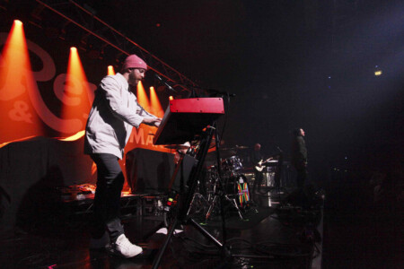 Bristol quartet The Ramona Flowers have clearly got a few supporters in tonight and receive a great homecoming reception as they head out to greet the crowd. Frontman Steve Bird covers a lot of ground as he paces up and down the length of the stage, arms spread as he belts out one anthemic chorus after another, making the space his own. The heavy electronic elements and backing-tracked bass give their live set an almost clubby feel at times, with Bird’s vocals and Sam Dyson’s melodic, strutting fretwork providing the perfect counterbalance. Dyson has the unenviable job of emulating Nile Rodgers, guest guitarist on streaming service favourite Up All Night, but does so with real swagger as the onlookers below lap up every word and sway as one. Ghost is another crowd-pleaser, huge 80’s style synths and choppy drums driving a chorus that soars so high it could almost lift the roof and cause the whole venue to float away over Clifton Suspension Bridge, like a weird sweaty version of Up. It’s down on the ground we stay though, soaking up the rays of sound like sonic sunbeams and scuffing our shoes across the floor. The Ramona Flowers’ sound wasn’t built for smaller venues, so it’s fitting to get the chance to see them in a space this large when they’re evidently at their best.