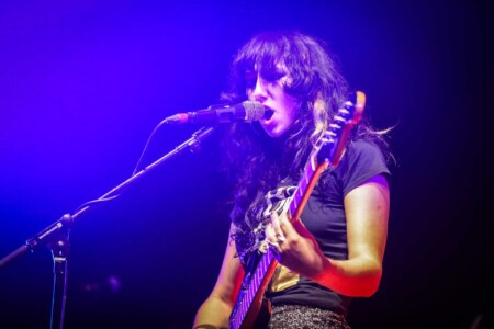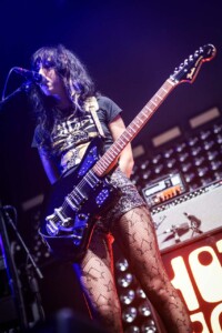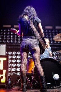 8pm sharp and Hot Wax hit the stage – the two ladies glammed to the nines sparkly shorts and hair ablaze with colour these two rockers mean business. Right away you know these ladies are a handful, the growling noises coming from Lola Sam’s bass shakes the building and the cutting vocals and lyrics of Talluah Sim-Savage are tossed out over the Belfast crowd as they take in the sonic onslaught in front of them.