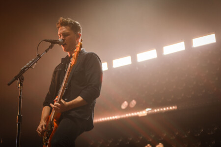 At 9PM on the dot Mike Kerr and Ben Thatcher took the stage with as the crowd errupted. Kerr, wielding a bass guitar that produced a sound as thunderous as any guitar, and Thatcher, sitting at his drum kit, ready to unleash a rhythmic storm. With just two instruments and their voices, they create a wall of sound that would question just how many people are playing on that stage! From the first note, Royal Blood’s musicianship was sublime. Mike Kerr’s bass guitar work was nothing short of extraordinary. He made the instrument sing, creating melodies and riffs that that bellow out over the Belfast audience, slamming those four strings with such intensity and verve that you can clearly see why there is no need for a guitarist. His powerful vocals soared above the music, gripping with the crowd on an emotional level. The chemistry between Kerr and Thatcher was electric, with each musician effortlessly syncing their rhythms and energies, driving the performance to greater heights. The beauty of a two piece for all to see, the raw, ethereal energy setting The Telegraph Building on fire!