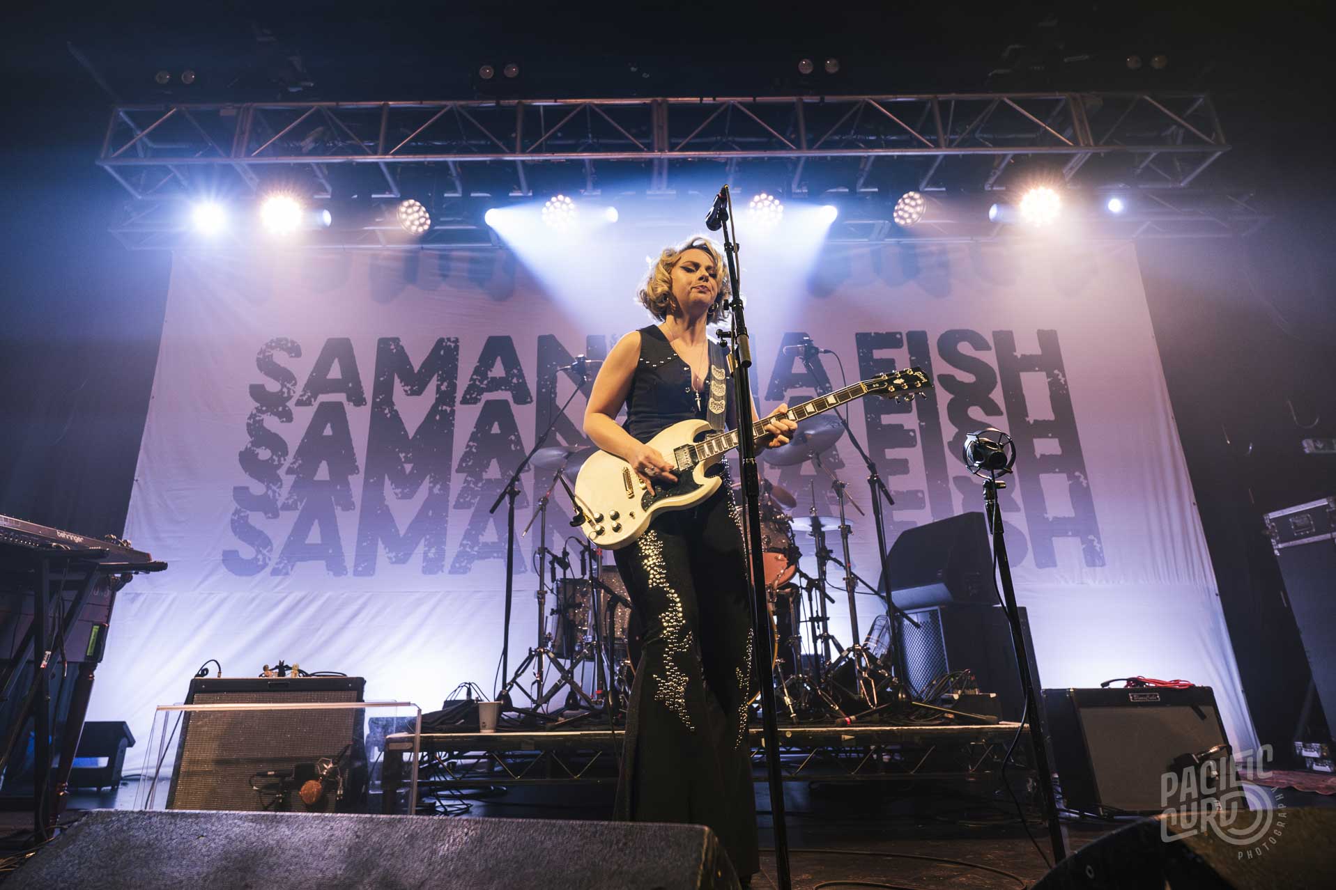 After a brief intermission, the much-anticipated Samantha Fish came on stage with complete confidence and joy. With star-studded flared leggings and a Marilyn Monroe hairstyle, she is instantly recognisable with a personal image you know will be eternally iconic.