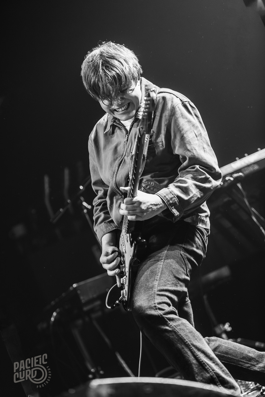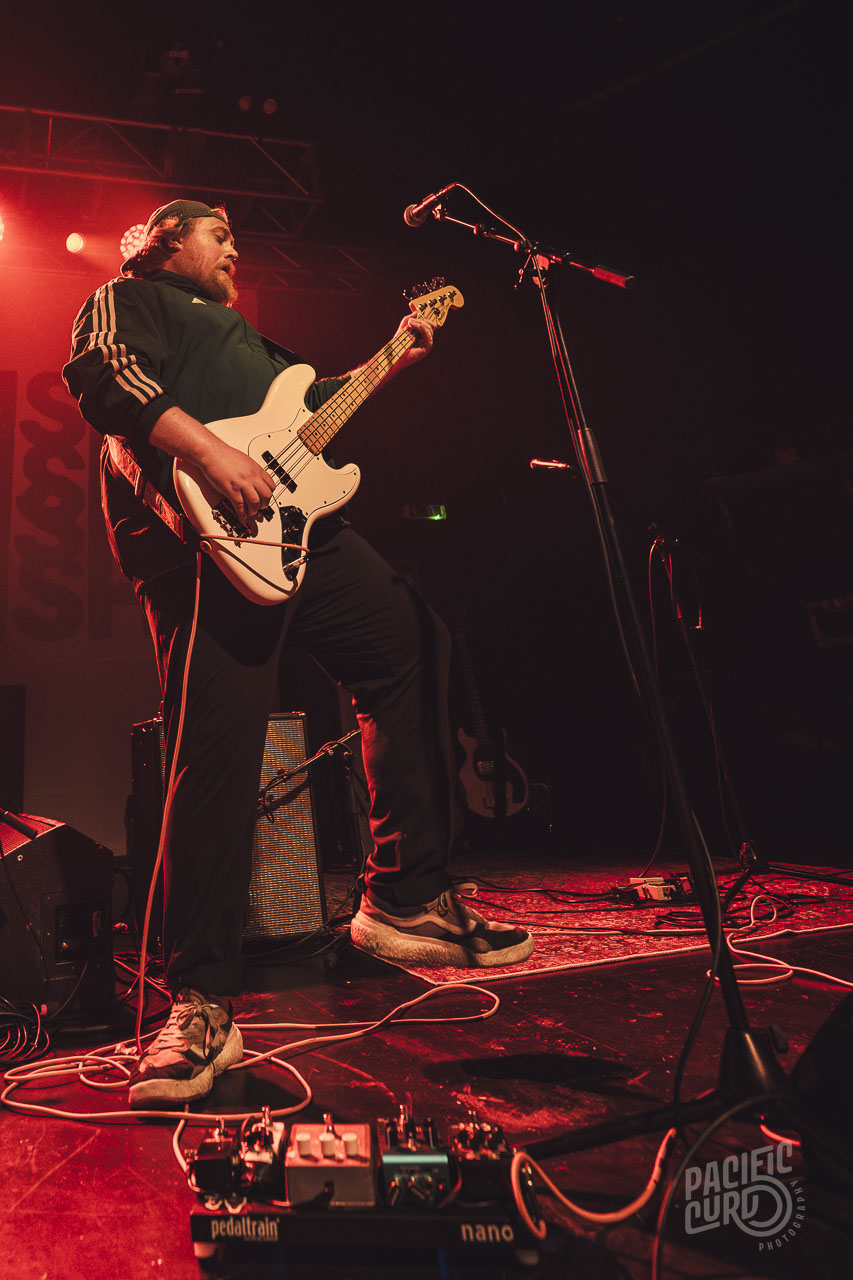 Zac Schulze’s Ferris Bueller-esque animation and facial expressions had him darting crisply across the stage, with theatrical body language in time with the music, making the show all the more compelling. However, the frontman was not afraid to let the other members showcase their talents as well, with the aforementioned drums a constant driving force and Greenwell’s bass solos taking centre stage, in addition to his lead vocals on ‘Hole in my Pocket’, with a classic raspy blues voice.
