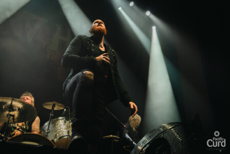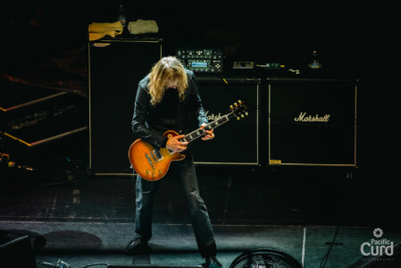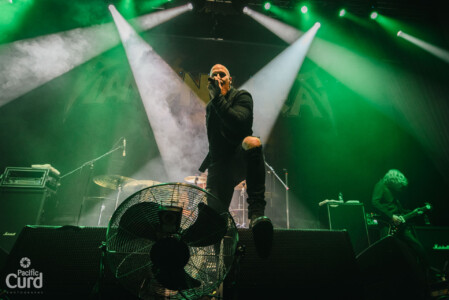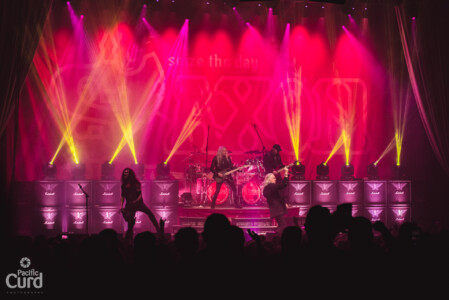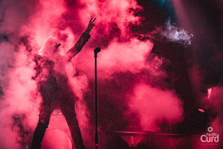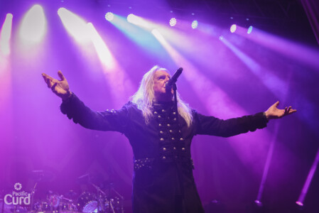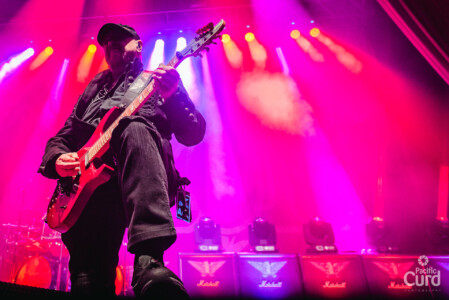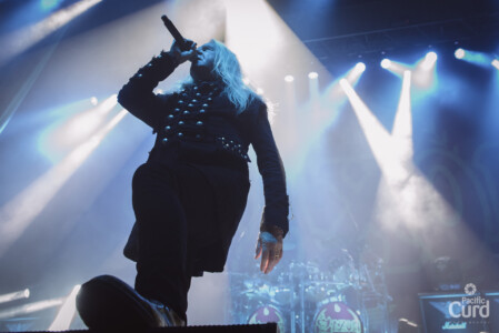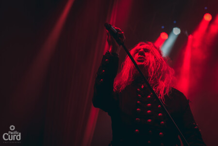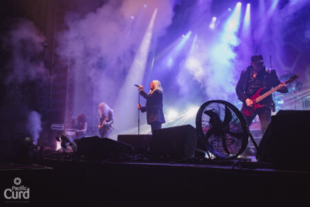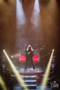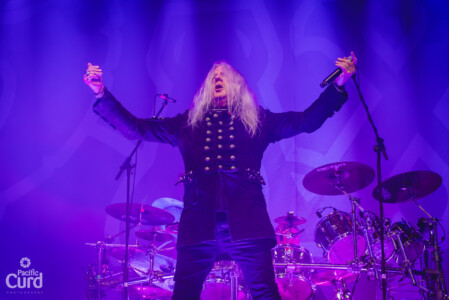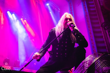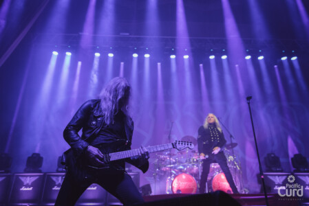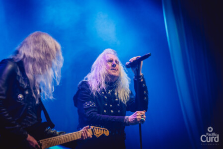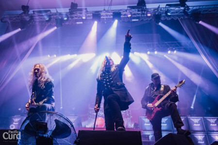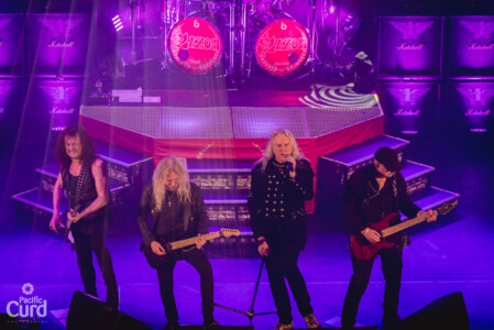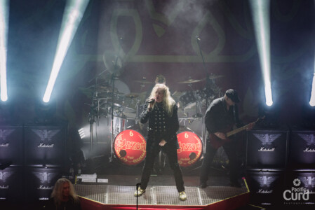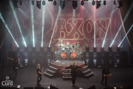 The lights go down and the crowd roars as Saxon takes the stage, launching into their new album ‘Carpe Diem’s’ title track. Biff Byford struts around the stage wearing his signature military-style jacket happily recovered from his recent health problems, as they segue into ‘Welcome to the Sacrifice’. The stage lighting goes blood red as Nibbs Carter throws himself around and bashes his explorer bass like a maniac surrounded by a devilish fog; then they’re straight into ‘Age of Steam’ with the smoke puffing like a stage full of steam engines.