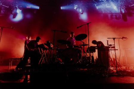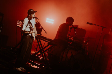 A slow build-up has the crowd on the edge of their, well, not seats but toes, anticipating the climax of the song. For a Brighton-born post-punk band, they have an ethereal and orchestral sound before their drummer and lead vocalist Ollie Judge begins to thumb his base pedal to get the crowd jumping and swinging their long hair. The band have a big sound, with a seven-piece on stage they are creating a wave of sound that hits the back walls of the venue and bounces back. The chemistry and rhythm between all seven of them is immaculate, the energy of a true rock band is kept alive and it isn’t long before moshes start to form. As the very British-sounding baseline of G.S.K starts, the crowd split ready to pounce. Watching this from the upper balcony I feel as though I am watching not only the band perform but a beautifully crafted performance dance from the crowd, a magnificent spectacle. I am blown away by the intricacies and sheer craftsmanship of Squid’s music in a live setting. Extremely complicated and wonderfully chaotic meshes of digitally generated sounds mixed with classic percussion have me unsure how exactly to describe this band other than modern geniuses.