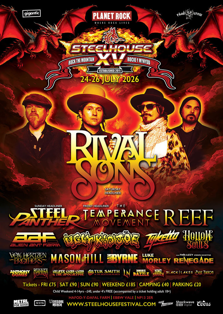 About Steelhouse: Utterly unique and truly independent since its establishment in 2011, Steelhouse is a firm fixture on the UK music event circuit drawing rock bands from around the world. With its spectacular mountain top setting in the heart of the South Wales valleys, this friendly and great value festival has built up a true following and a real heritage of its own. Previous performers at Steelhouse have included Thin Lizzy, Glenn Hughes, Myles Kennedy, W.A.S.P., Those Damn Crows, Lita Ford, Black Star Riders, The Wildhearts, Thunder, The Darkness, Accept, Mr. BIG, UFO, Uriah Heep, Europe, Rival Sons, Saxon, Anvil, Michael Schenker, Black Stone Cherry, Airbourne, and Skindred. The event now includes a larger stage, an official Friday night, more glamping and we are working once more with our media partner Planet Rock. |