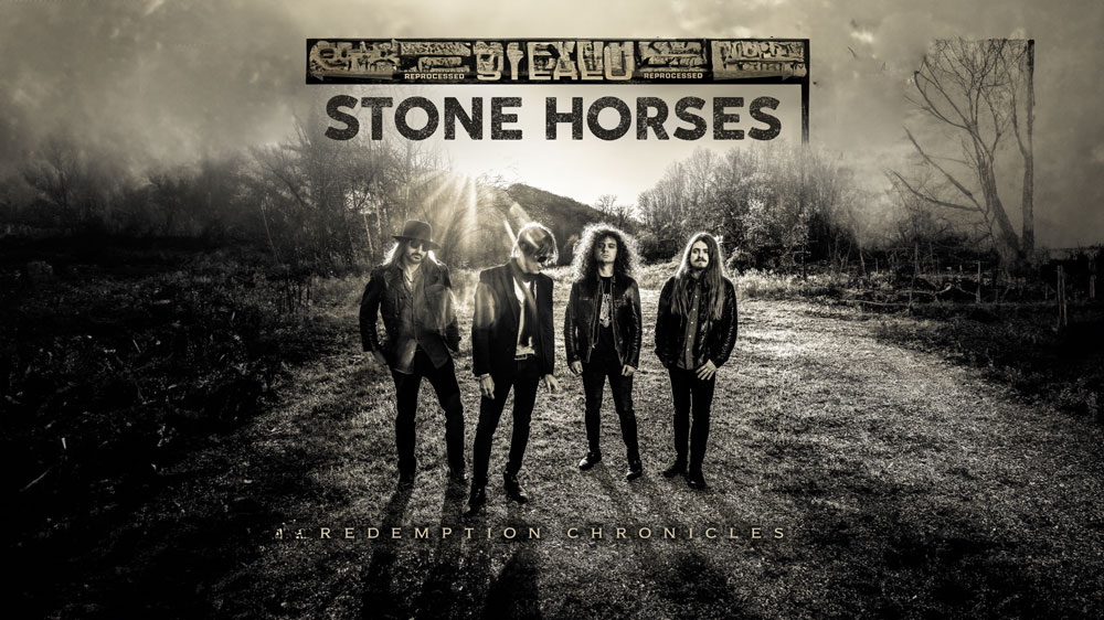 STONE HORSES TO RELEASE REDEMPTION CHRONICLES DIGITALLY ON OCTOBER 25 ALBUM AVAILABLE PHYSICALLY ON NOVEMBER 22 BAND SHARES “FREE” (REMIX) VIDEO — WATCH Maryland quartet STONE HORSES — John Allen ( vocals + guitar); Teddy Merrill (guitars); Dylan Howes (bass); and Jason Heiser (drums) — are pleased to announce their new album Redemption Chronicles. The album will be available digitally worldwide on October 25. It arrives physically on November 22. Pre-order it here. A limited edition indie exclusive vinyl releases to retailers nationwide on November 22, as well. A limited webstore exclusive variant is also available along with other exclusive products. It will be available in standard black and on CD as well. For more information, go here. Today, the band has shared the video for the rippin’ and riffy new single “Free” (Remix). Watch it here. “The lead of single ‘Free’ (Remix) is really a dedication to the fans that we’ve encountered around the world,” says Allen. “Wherever you are — I’m dying to be!”He continues, “Redemption Chronicles is a way to introduce the uninitiated to the band. Some of our best songs throughout the life of the band, some new material, and some fun covers.” If you dig classic rock riffs on top of riffs on top of even more riffs, soulful and heartfelt vocals, and even more riffs, then you will dig STONE HORSES, who have shared stages with like-minded acts such as Slash, Brother Cane, Greta Van Fleet, and Rival Sons. They also scored top honors at the 2024 Maryland Music Awards. The band has struck a perfect balance between vintage rock sounds, with a modern twist. Their songs will get your body moving! STONE HORSES are currently enjoying radio airplay at WRIF/Detroit, WIIL, Chicago, KCAL/Riverside, CA, and many more. REDEMPTION CHRONICLES TRACK LISTING:
