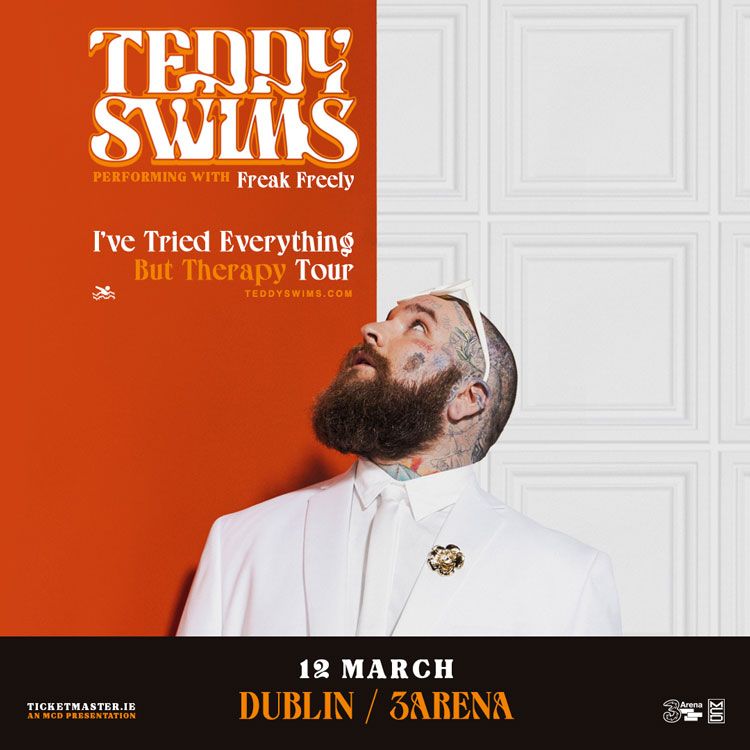 September 16, 2024 (Los Angeles, CA) — Today, chart-topping hitmaker Teddy Swims announces the continuation of his I’ve Tried Everything But Therapy tour with an extensive run of arena shows throughout Europe and the United Kingdom in early 2025. Kicking off on February 11 in Düsseldorf, Germany, the tour includes stops in Oslo, Berlin, Paris, London and more before wrapping up in Dublin on March 12. See the full list of dates below.