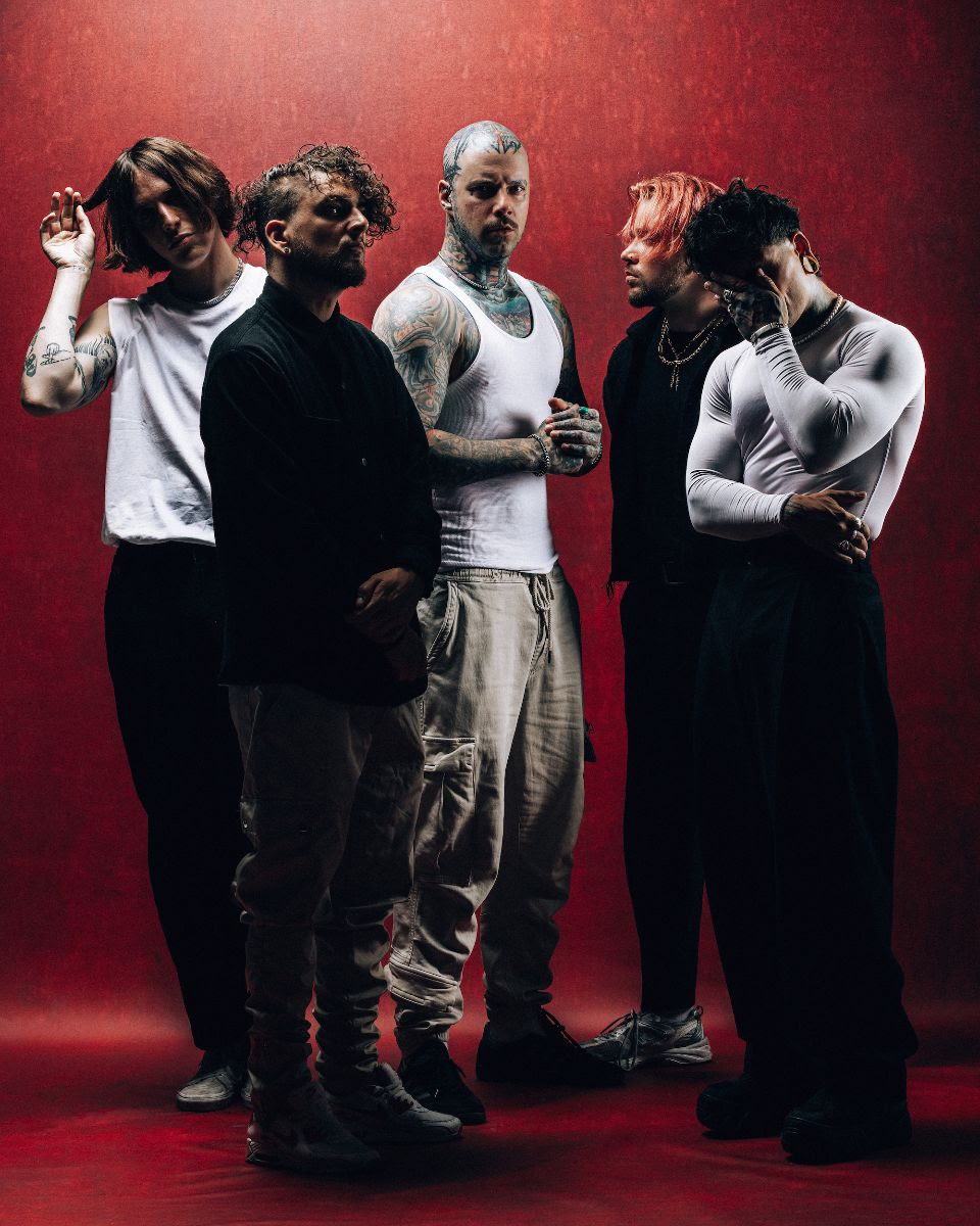 “No compromise.” It’s phrase that’s become something of a mantra for ten56.; a reminder that the band – vocalist Aaron Matts, drummer Arnaud Verrier, bassist Steeves Hostin and guitarists Quentin Godet and Luka Rozaka – will speak to one another in moments of doubt, a driving statement of intent.It’s a phrase, too, that embodies everything about the quintet – from the feral ferocity of their brand of industrial-laced deathcore, to the bloodletting intensity of Matts’ brutal lyricism. In five short years since their formation, ten56. are a band who’ve established a reputation for taking no prisoners, pulling no punches, and biting no tongues.The band’s debut offerings – the two-part Downer EPs, combined into an album of the same name in 2023 – was the Paris, France-based band serving notice of intent on an unsuspecting world, catapulting them to festival stages across Europe and North America, and tours across Australia and Japan. Their breakout success led to them leaving an indeniable mark on tour supporting the likes of While She Sleeps, Northlane and Ladmvrks, too. Now, new album IO is their sledgehammer assault on the barricades of the heavy music world. ten56. are here to take over. |