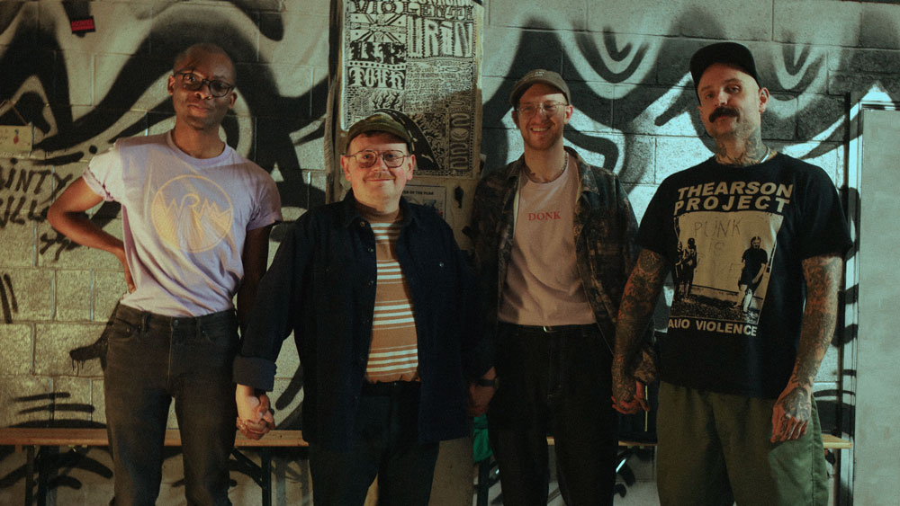 Thank is made up of Freddy Vinehill-Cliffe (vocals/guitar), Cameron Moitt (bass), Lewis Millward (guitar/synth), and Steve Myles (drums). Their unique blend of noisy, internet-poisoned, dancefloor fillers have built them a cult following with a diverse range of devotees including BBC Radio 6’s Steve Lamacq, The Needle Drop’s Anthony Fantano, The Quietus, Bandcamp Daily, Loud & Quiet, IDLES, Yard Act, PigsX7, and even comedian Frank Skinner.