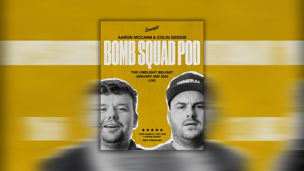 Comedy Heavyweights Colin Geddis and Aaron McCann have joined forces to create Northern Ireland’s hottest new podcast, ‘The Bomb Squad Pod’. After a sellout live show in Waterfront Hall, the duo announce they’ll bring their hilarious video reactions and explicit sound effects to the Limelight Belfast on 2nd January 2024!