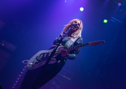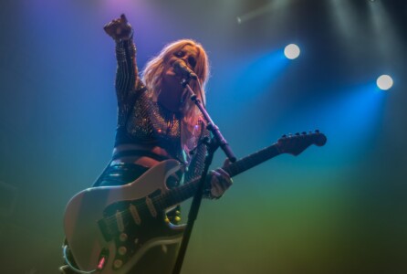 The final song of the set ‘Criminal’, finds Lindsay on her knees with her top half laying back playing a wonderful solo on the edge of the stage. A mighty impressive display of flexibility and guitar playing indeed.