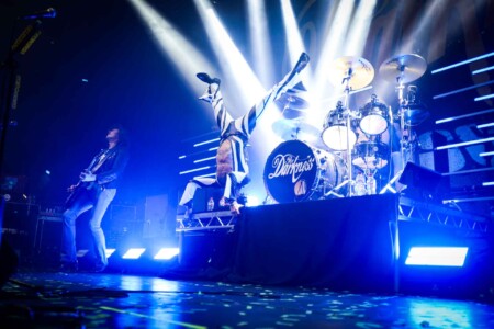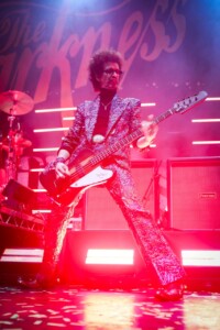 Throughout the evening, The Darkness engaged with their audience, creating an intimate connection that transcended the stage. Justin Hawkins interacted with fans, sharing anecdotes and expressing gratitude for their unwavering support over the past two decades. The sense of camaraderie in the room was palpable, as fans and band alike celebrated the enduring legacy of “Permission To Land.”