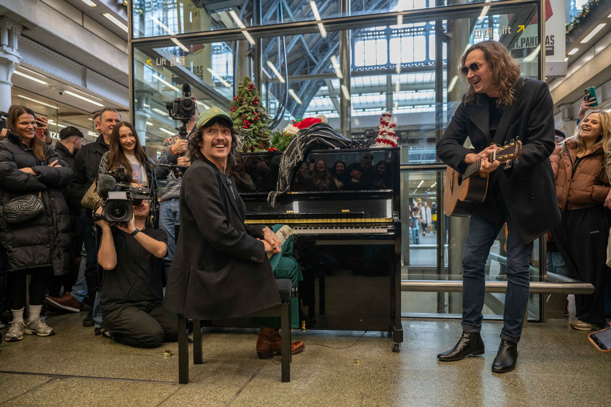 Picture credit: Sam Lane photography 25th November 2025 – Today, St. Pancras International played host to British rock legends The Darkness who delivered an impromptu live performance at the station in a week of landmark announcements for the band. Performing in homage to the 20th anniversary of their smash hit second album One Way Ticket To Hell… And Back, which featured an iconic stream train on its front cover, the band were also celebrating the announcement of their largest headline tour in 20 years, which takes place across UK arenas in December 2026. Pre-sale for the December 2026 UK arena tour starts at 10am Wednesday 26th November 2025 here, and general sale starts at 10am Friday 28th November 2025 here. The Hawkins brothers, Justin & Dan, performed songs including their festive smash hit ‘Christmas Time (Don’t Let The Bells End)’, a take on Cliff Richard’s ‘Mistletoe and Wine’ and further Darkness hits and fan-favourites including ‘I Believe In A Thing Called Love’, ‘Givin’ Up’, ‘Friday Night’ and more. The Darkness frontman took to the St. Pancras piano to perform and sing, while Dan Hawkins accompanied on acoustic guitar. The performance from the multi-platinum and award-winning rock band brought the power of rock and festive merriment to the surprise and wonder of onlookers this lunchtime at St. Pancras Station who were in full voice for the occasion. The performance follows in the footsteps of GRAMMY® award winners Alicia Keys and Norah Jones, Jeff Goldblum, and dynamic duo Rod Stewart and Jools Holland who performed at St. Pancras International. Other world-class performers to have graced the famous St. Pancras pianos include internationally acclaimed music giants Elton John and John Legend. St. Pancras International has become renowned for regular performances from stars, talented members of the local area and even visitors from afar. The station’s main Arcade, which is host to the pianos, has grown into a hub of cultural activity over the years, creating a strong sense of community and lively destination for exciting arts activations. Regarding the performance Justin Hawkins says, “As Santa prepares to fly his reindeer-fuelled sleigh of Slays across the night sky, thence to squeeze his tubby frame down the exhaust flues of the nation’s central heating boilers, so we, The Darkness, dust off our Christmas songs in readiness for a glut of celebration! And what better place to celebrate than Britain’s favourite railway station?! As the commuters hurry by, mince pies crushed in their frozen palms, we are filled with joy to tickle the ivories of Christmas Warmth, and strum upon the Lute of Festive Light.” Peter Martin-Jones, Head of Marketing at London St. Pancras Highspeed says “St. Pancras International has become one of London’s go-to spots for live music, and having The Darkness bring such a festive performance to one of our iconic pianos perfectly captures that spirit. We are so pleased that Justin and Dan chose to pay us a visit in such an exciting week of announcements for the band.” For more information on music, arts, culture and retail events happening in St. Pancras International station, visit https://stpancras.com/news-events and follow @StPancrasInternational on Instagram. THE DARKNESS 2026 TOUR DATES