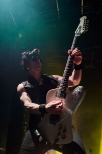 Ben Christo does all the heavy lifting tonight, either as a result of Smith’s difficulties, or in spite of them, his guitar lines slicing through the mechanised rumble like razor wire. Christo’s hair-metal backing vocals become call and response to a crowd only-too eager to sing along. Doctor Jeep chugs into a medley with Detonation Boulevard, both from the last studio album Vision Thing, and an impromptu This Corrosion goth-voice choir rattles the Roundhouse roof.