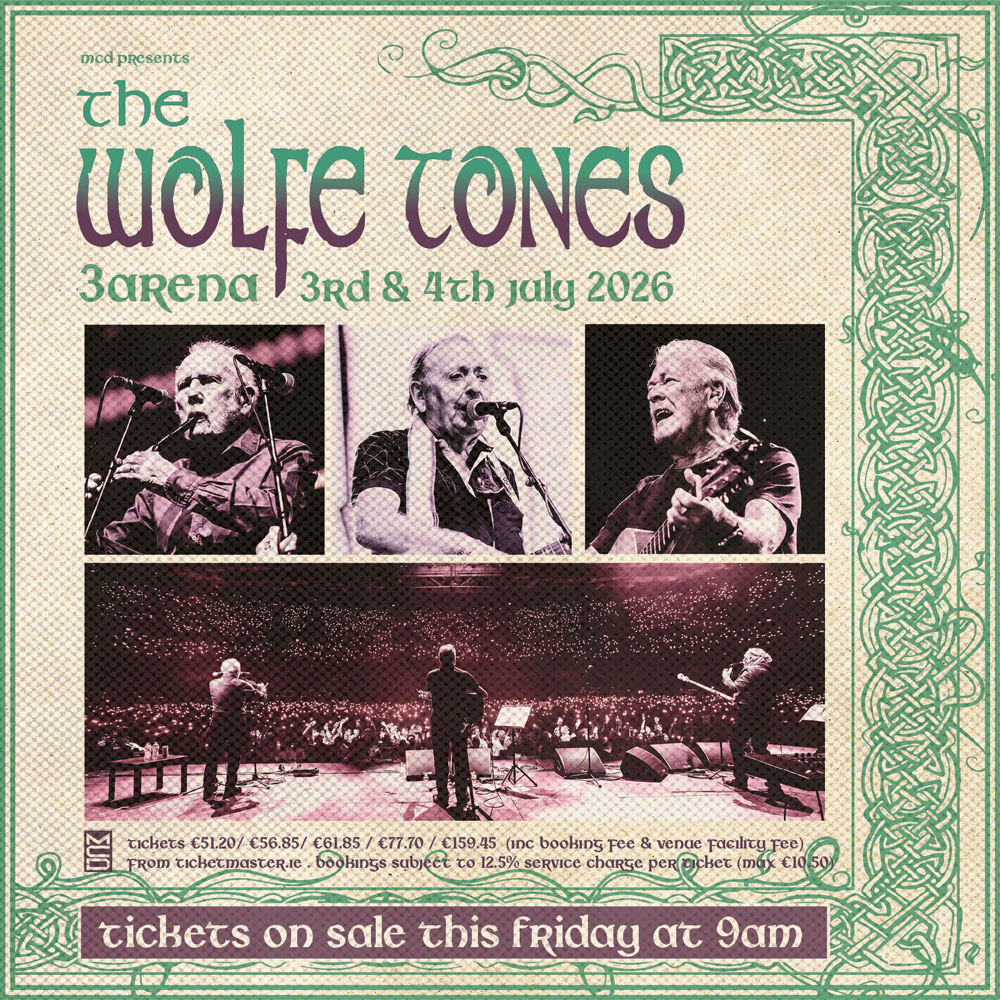 We’re proud to sing about the history, culture and character of this country, and we still have the fire to do it. So in 2026, we’ll take to the stage once more. Thank you for the support — we look forward to sharing the music and the moments again.” The Wolfe Tones.