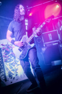 Before our headline act takes to the stage however we have two supports tonight both of which are also Welsh natives. Up first, however, is Valhalla Awaits. The crowd is already strong for this sell-out show and pressed up against the barrier. As the guys take to the stage, to a short intro track they soon tear straight into “Door Of No Return”. Their heavy blend of rock is well received by the crowd and the band themselves remain ever the professionals despite the red and green balloons which made their way onto the stage from some fellow welsh supporters. They make use of every bit of the stage with an incredible amount of energy despite it being a mid-week night. As the set continues with heavy hitters such as “Slave” and “Black Waters”, the crowd are eating up every bit of what this band has to offer. Ending the set with “Diggin The Grave” I’ve no doubt that Valhalla Awaits will have gained some new fans tonight after that impressive performance.