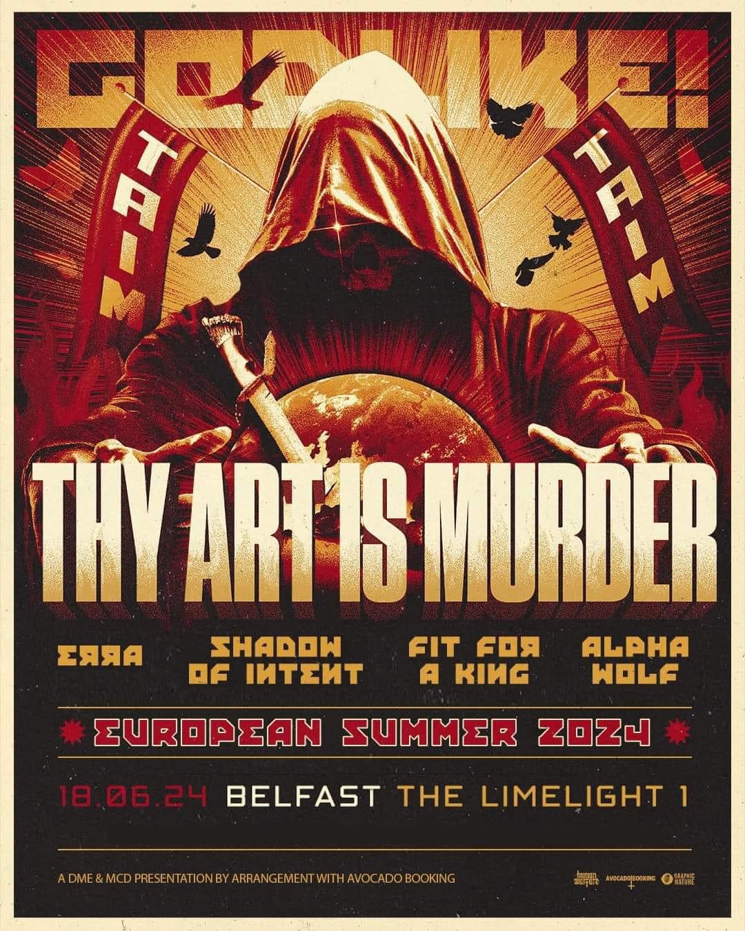 Here we go, 10pm and Thy Art Is Murder are about to take the stage and set the Limelight alight like no other tonight! Headlining a bill such as this you’ve earned your stripes, put in the miles and know how to command a stage! It’s a shorter than usual 1 hour set but welcome to Norn Ireland it’s dark ages opening hour policy! Me I’m ready for my bed! This has been a gruelling week of gig after gig, I am very very lucky to be front and centre taking it all in, but a man’s gotta pay the bills doing other things too and shizzle is burnt out ta fuck ! Just gotta make it to the weekend ! That’s if Thy Art doesn’t kill me first!