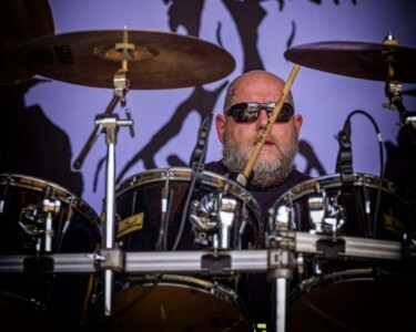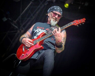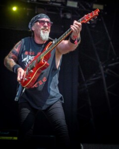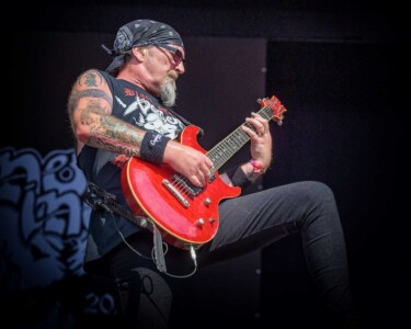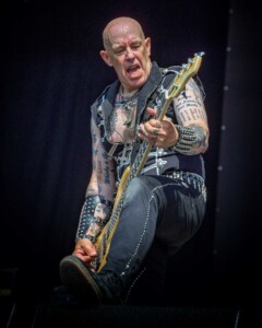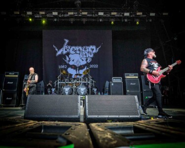 Heading to the stage next are Venom Inc with some black metal. These guys change the pace of the day with their darker tone while still keeping the energy up. The band seem ready to have a good time and while a string is being changed, they engage and talk with the audience in a way that sounds like they are truly grateful to be playing to the crowd today. During their performance they use every inch of the stage as they bound around and the performance into a show. They are going hard and heavy (hence the broken string) and the crowd seem to be really enjoying the set.