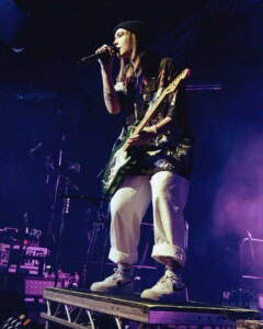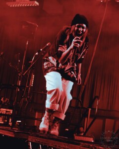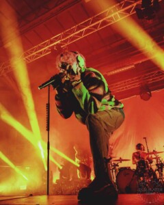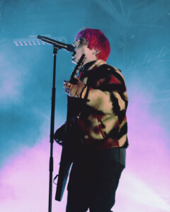 Waterparks is a Houston trio who, in their bio, describe their success as having come in 2020 after signing with a new record company that primarily hosted Hip-hop artists. The band are also known for their playful nature and colourful looks. The American 3-piece has seen a boom in popularity in the past year. Something only further propelled by their Internet presence. It isn’t surprising they have a mix of fans of all ages with their lyrical content and look. As soon as the band came on, the room was feral with screams and cheers. The singer sporting a neon fluffy patterned jacket, ran out on stage getting straight into their opener “St*rfucker”.