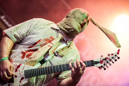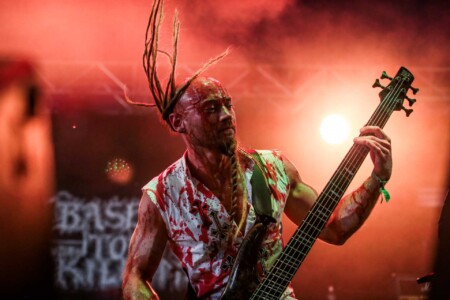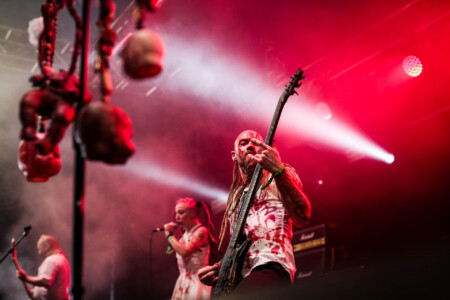 Rock ‘N’ Load’s thoughts “Theatrics and brutal death metal, what’s not to love about BTK and their savage style of horror metal, the Sophie crowd was gobbling it up from start to finish as they packed out the tent enjoying a brief 30 minutes in the shade in the company of the worst of friends, highly recommended if you love a bit of drama alongside your music”