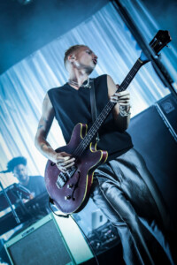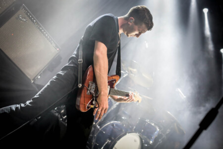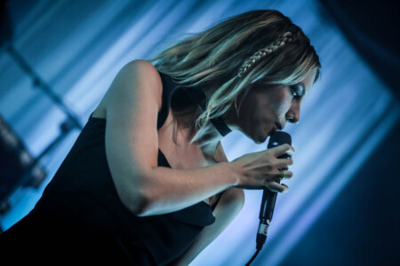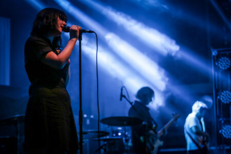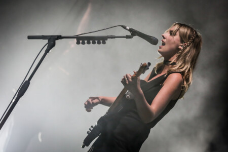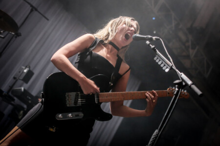Under low blue light and with zero pomp or circumstance Just Mustard files onto the stage, they adopt the quintessential shoegaze persona on stage and antithesis of the normal ‘let’s open up the pit’ rock band. Normally it’s a pet hate of mine when a band don’t move during a set but it only serves to reinforce the delivery of their songs; dark, creepy and abrasive delivered in a deadpan manner with little crowd interaction. To be able to pull this off and still hold the crowd is no mean feat and a testament to the quality of the material and the band. Katie Ball’s vocals sound amazing floating in amongst the swathes of reverse reverb and fuzz of guitarists David Noonan and Mete Kalyon. Rob Clarke’s bass sounds massive and is the anchor that holds the songs together. Shane Maguire’s approach to the drums is a mix of sparse dance/trip-hop beats, devastating in their effect.