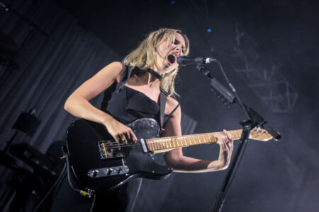 And then…then begins the yodelling, the beck and call that pulls Wolf Alice to the stage. They emerge to a rapture of applause and screams and move straight into ‘Smile’, the rumbling bass line shaking the foundations of ‘this big, weird creepy room’ as Theo later dubs the Telegraph Office. The crowd sing along with every word of ‘You’re a Germ’, the band visibly enjoying the crowd’s reaction as we all scream and count to 7 in unison. Three albums into their career Wolf Alice have a wealth of material to pull from and every song feels like it’s a single. The mark of a great band to me is a band that can play any kind of song and it still be quintessentially themselves. Wolf Alice moves through the jangle rock of ‘Formidable Cool’, complete with the crowd screaming along that line, to California-soaked ‘Delicious Things’ and ‘Lipstick on the Glass’ to the shoegaze-tinged ‘Planet Hunter’. This is done seamlessly and through the entire set, it feels like we’re being taken on a very deliberate journey, with many ups and downs, flavours and emotions. This is not just a band playing the greatest hits..ahem.